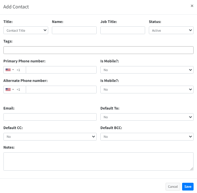 When selected, this contact’s email will automatically receive a carbon copy (CC) of emails sent to the client. -